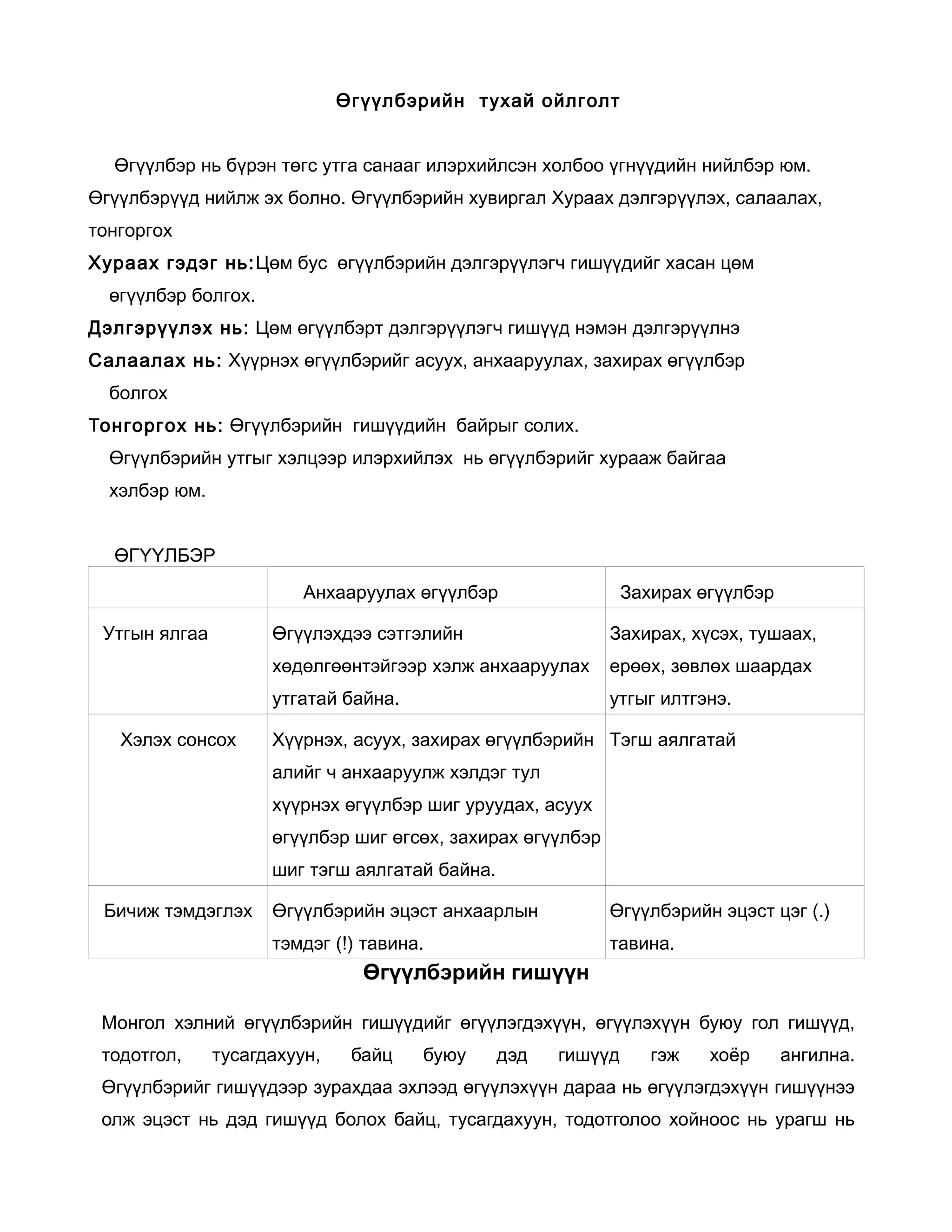 гэсэн дарааллаар зуржболно. Өгүүлбэрийн бүрэлдэхүүнд багтаж ,бие даасан аль нэг