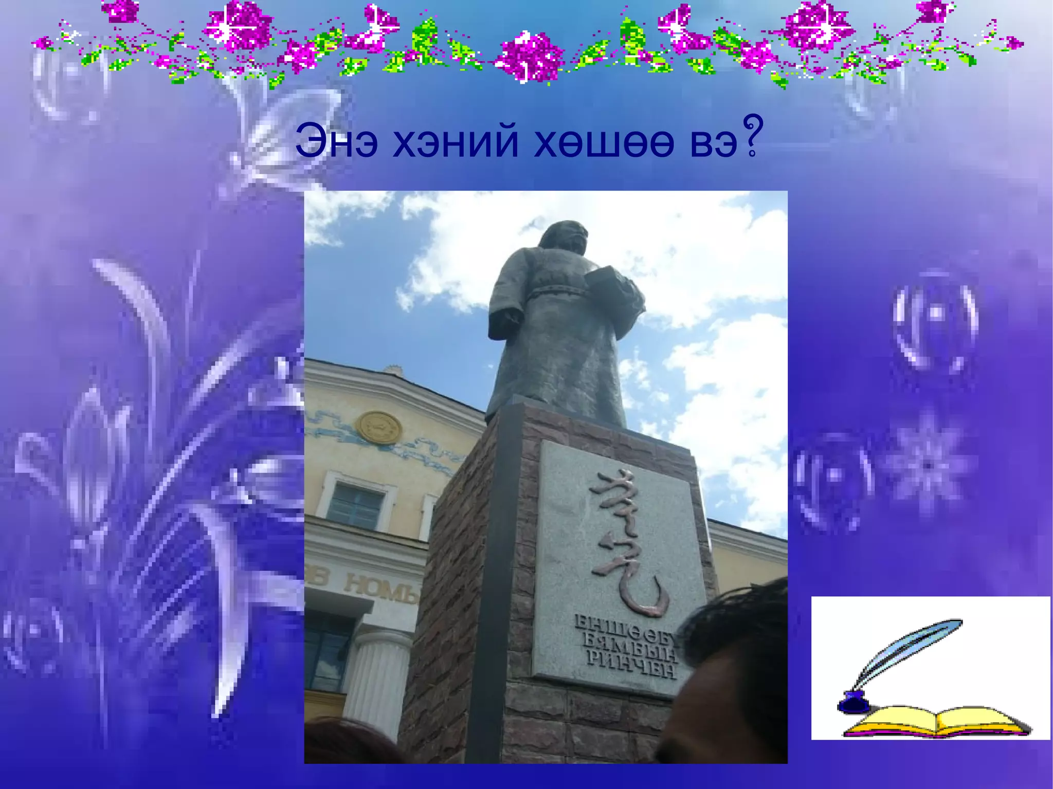 Нэрт эрдэмтэн зохиолчБ.Ринчений тухай бид юу мэдэх вэ? Еншөөбуу овогт Бямбын Ринчен нь Монголын орчин үеийн утга зохиолыг үндэслэгчдийн нэг, монголч эрдэмтэн байв. Тэрээр 1905 онд Хиагт хот (одоогийн Алтанбулагт) төржээ. Тэрбээр монгол хэл бичиг, ардын билиг, угсаатны зүйн маш олон судалгаа хийсэн, Шинжлэх ухааны академийн жинхэнэ гишүүн, хэлбичгийн ухааны доктор цолтой байв. - 5.