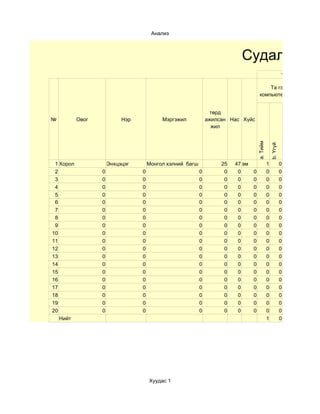 Хүснэгтэн мэдээлэл боловсруулах OpenOffice.org Speadsheet програм дээр дүнгийн хүснэгт гэх мэт сургалтад ш