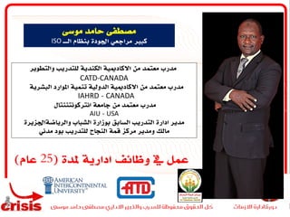 يتناول الوثيقة مفهوم الأزمات ومهارات إدارتها، موضحًا أهمية التعرف على نوعية الأزمات وآثارها وكيفية التفاعل معها. يشير إلى الحاجة لاتخاذ قرارات غير تقليدية لمواجهتها ويُبرز التحديات المرتبطة بالتعامل مع الأزمات، خاصة في ظل تسارع الأحداث وضغوط اتخاذ القرار. يذكر أن الأزمات قد تنشأ من غياب التخطيط أو سوء الإدارة، مما يؤدي إلى آثار عميقة على المؤسسات.