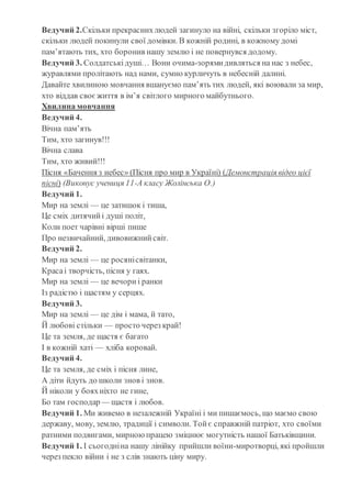 Ведучий 4. До Міжнародного дня миру в нашій країнілюди ставляться з