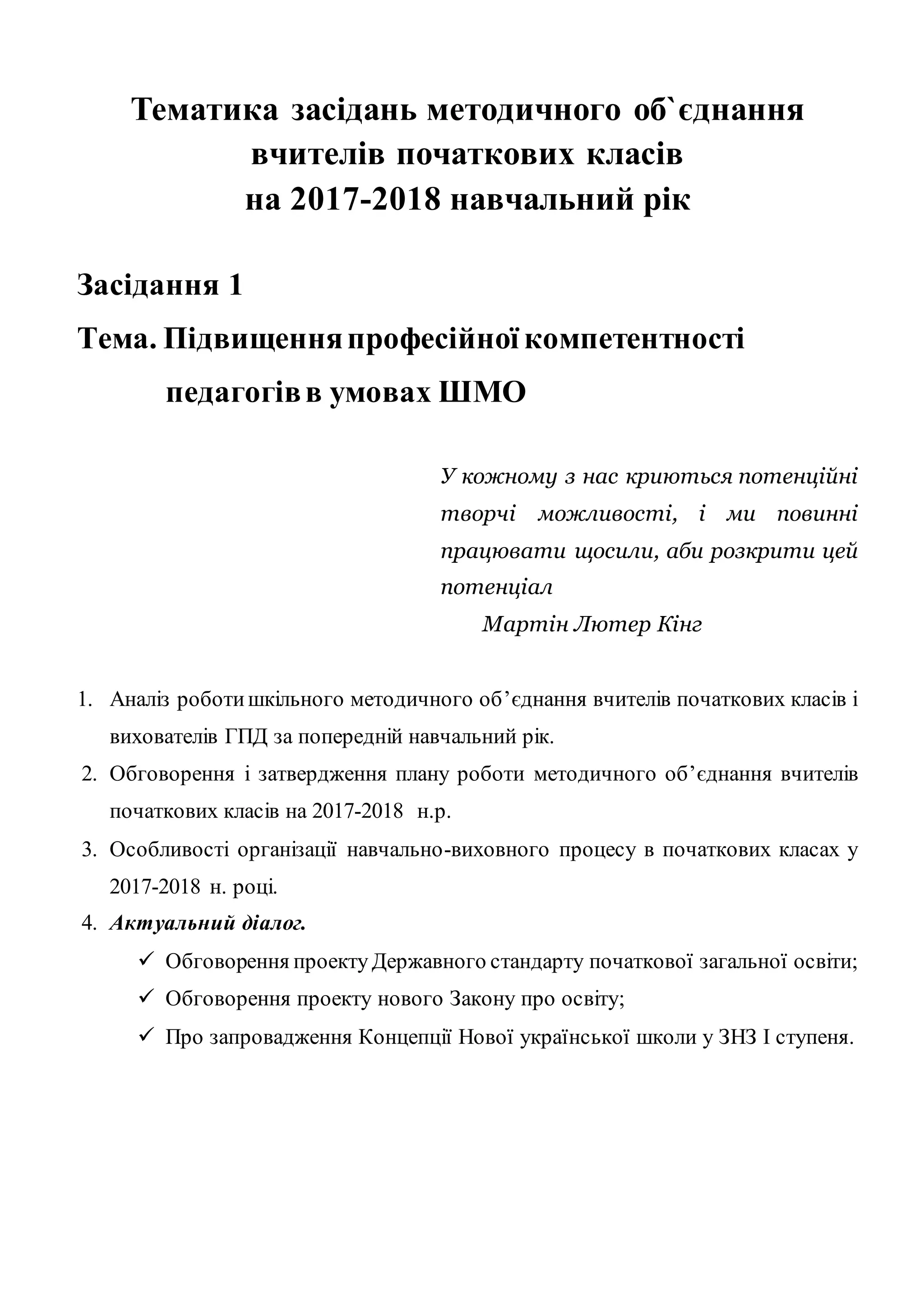 1. Аналіз роботишкільного методичного об’єднання вчителів початкових класів і