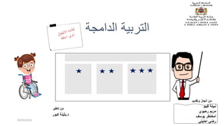 تستعرض الوثيقة مفهوم التربية الدامجة وأهدافها المتعلقة بإدماج الأطفال ذوي الإعاقة في النظام التعليمي المغربي، حيث تسعى إلى تحقيق تكافؤ الفرص والتعليم الجيد للجميع. كما تناقش المبادئ والمرتكزات التي يعتمد عليها هذا النوع من التربية لضمان حقوق الأطفال وإزالة التمييز والتهميش. تبرز الوثيقة أهمية الشراكة بين الفاعلين في المجتمع والتربويين لضمان نجاح هذا المشروع.