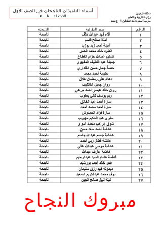 أسماء التلميذات الناجحاتقي الصف الول