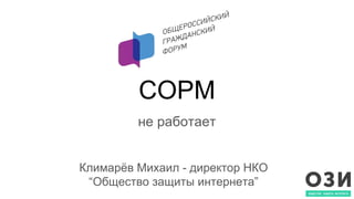 Документ обсуждает неэффективность системы оперативно-розыскных мероприятий (СОРМ) в России, указывая на высокие затраты и низкий процент успешных следственных действий. Упоминается, что операторы связи несут финансовую нагрузку на построение системы, которая не входит в их бизнес-планы. Также затрагивается вопрос минирования по телефону, которое стало массовым явлением в стране.