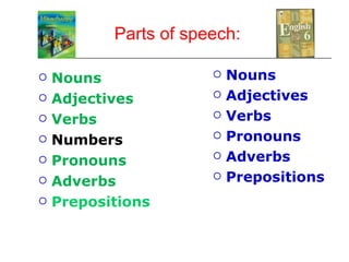 Документ представляет собой сравнительный анализ учебных методик для 6 класса, в частности УМК В.П. Кузовлева и Headway Elementary, фокусируясь на частях речи. Студентки обсуждают определения, формы и категории таких частей речи, как существительные, прилагательные, глаголы и местоимения, а также их использование в учебных материалах. Основное заключение указывает на отсутствие четких инструкций по формированию различных категорий и неравномерность представления частей речи в этих УМК.