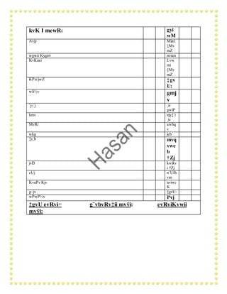 ‡gvU evRvi= g¨vbvRv‡ii mvÿi: evRviKvwii