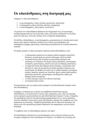o το γάλα (περιέχει κυρίως τον υδατ/κα λακτόζη)