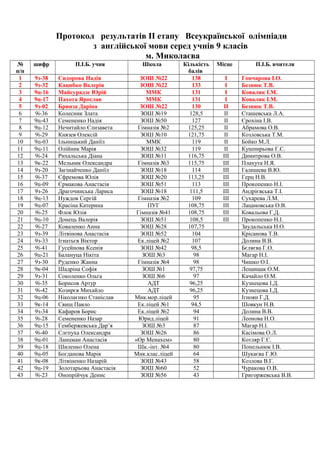 Протокол результатів ІІетапу Всеукраїнської олімпіади