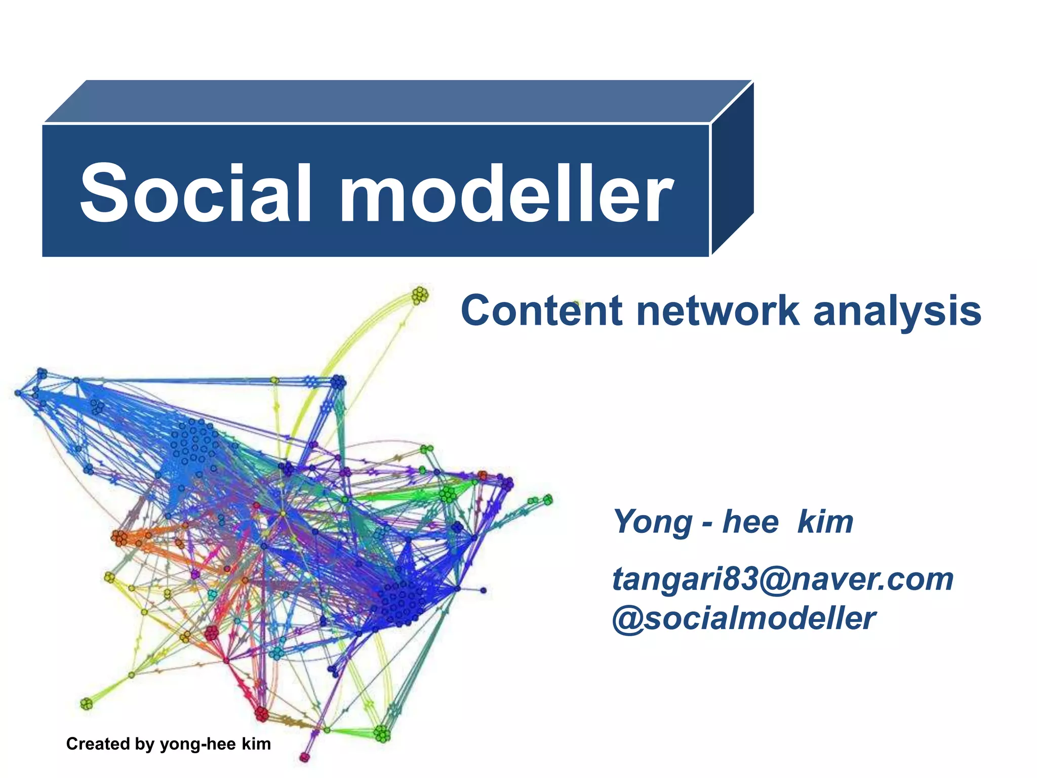Social modeller소셜미디어를 포함한최근 온라인 마케팅의 핵심은 누가 어떤 이야기를 하는지가 중요함 충성도가 높은 고객이 아닌 weak tie의 잠재고객들이 목표하는 재화에 긍정인가 부정인가 혹은 중립인가를 판단하는 것이며 이들 이야기가 어떤 경로로 움직이는지를 동시에 추적하여 적당한 시점에 적당한 장소에서 합리적인 방법으로 그들의 정서적 감성을 이용해야함. 여기, 그 방법과 대안을 제시함내용분석 이라고 하는 언어네트워크 분석 방식이 적용됨