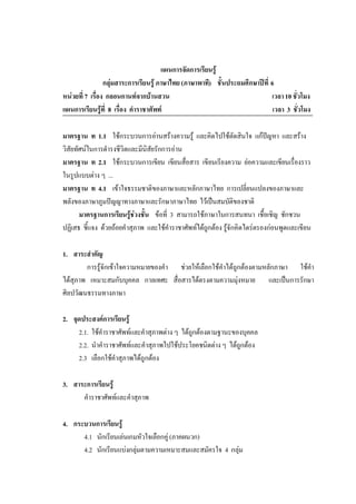 มาตรฐานการเรียนรูชวงชั้น ขอที่ 3 สามารถใชภาษาในการสนทนา เชื้อเชิญ ชักชวน