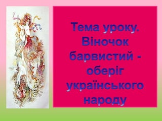 Презентація до уроку "Віночок - барвистий оберіг українського народу" Ніженець І.В. вчитель образотворчого мистетва та художньої культури