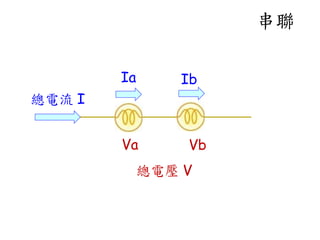 I = Ia = Ib 總電壓 V = Va + Vb