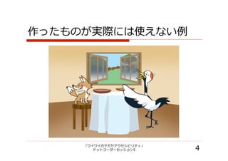 2010年10月16日の「ワイワイガヤガヤアクセシビリティ」 ドットコーダーセッション5での、持田のキーノートスピーチの内容です。 2010年10月18日AM11時 : オリジナルのフォントを埋め込んだPDF版に差し替えました。 スライドの2ページで触れているCMは、Youtubeで見ることができます。 http://www.youtube.com/watch?v=kCZWbsrfQ5s