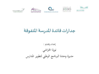 تتناول الوثيقة برنامج تطوير القيادة الذي يهدف إلى تعزيز كفاءات المديرين في المدارس. يتضمن البرنامج أهدافاً متعددة تشمل تعزيز الأداء وفهم الذات واكتشاف القدرات الكامنة. كما يسعى البرنامج إلى إدراك الخصائص المشتركة التي تميز الأفراد المتفوقين في القيادة وتطوير这些 المهارات.