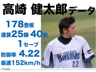 BPStudy#124 Baseball Play Study 2017 冬 野球振返りスペシャル https://bpstudy.connpass.com/event/69228/ にて LT したプレゼン資料です。 高崎健太郎による高崎健太郎の高さ危険太郎な、高崎愛に溢れたプレゼン資料です。 今回、僕の中での最大の見せ場は MyName 入りのユニに生着替えだったので、会場にいたら楽しんで頂けたのになぁと思います。