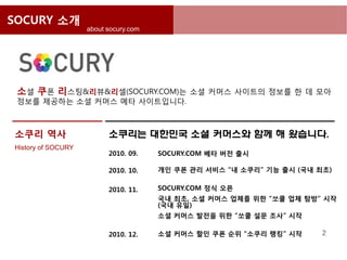 소셜 쿠폰 리스팅&리뷰&리셀(SOCURY.COM)는 소셜 커머스 사이트의 정보를 한 데 모아