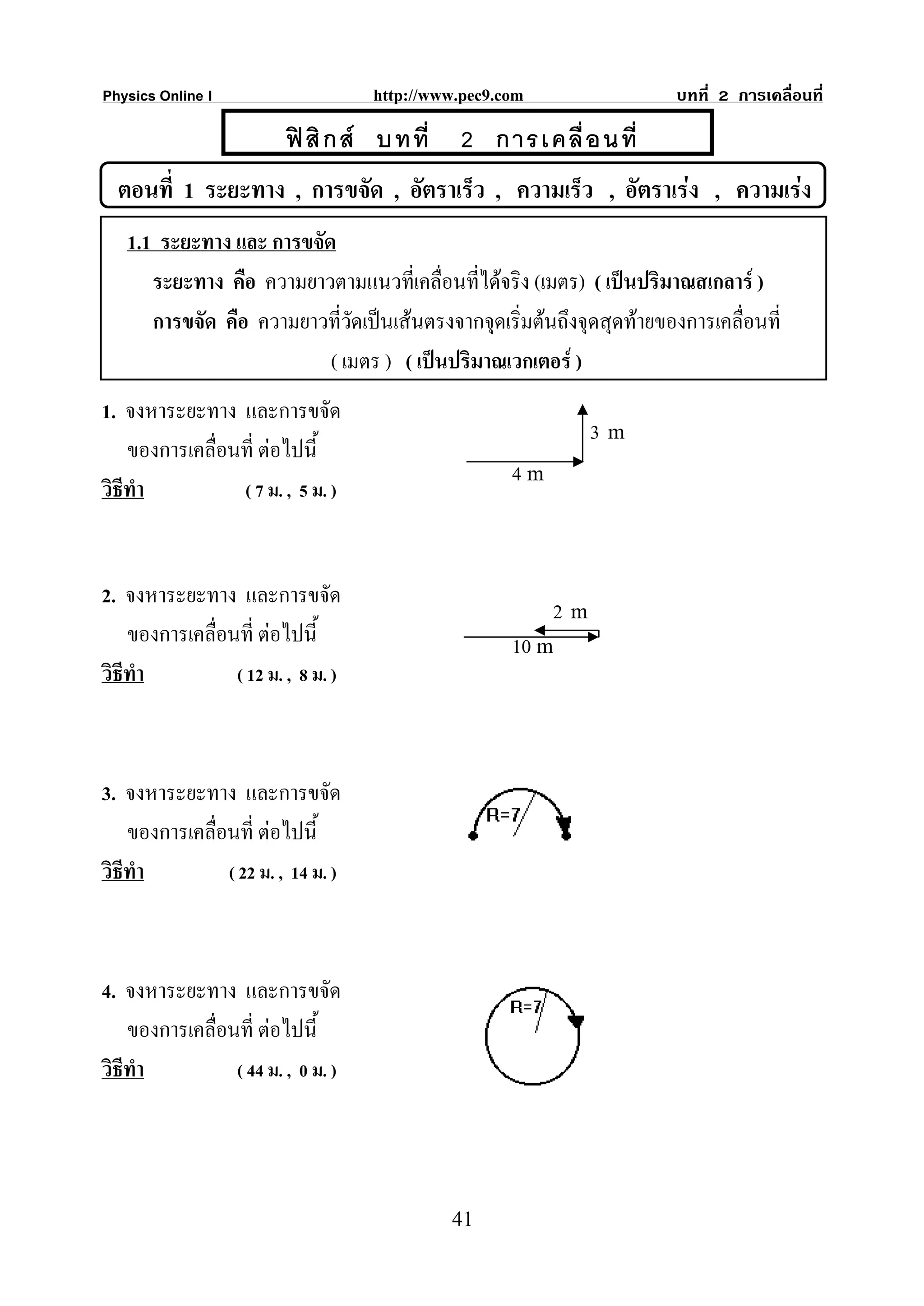 Physics Online I http://www.pec9.com บทที่ 2 การเคลื่อนที่