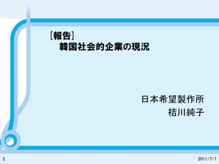 韓国社会的企業の現況 日本希望製作所 桔川純子 2 2011/7/7