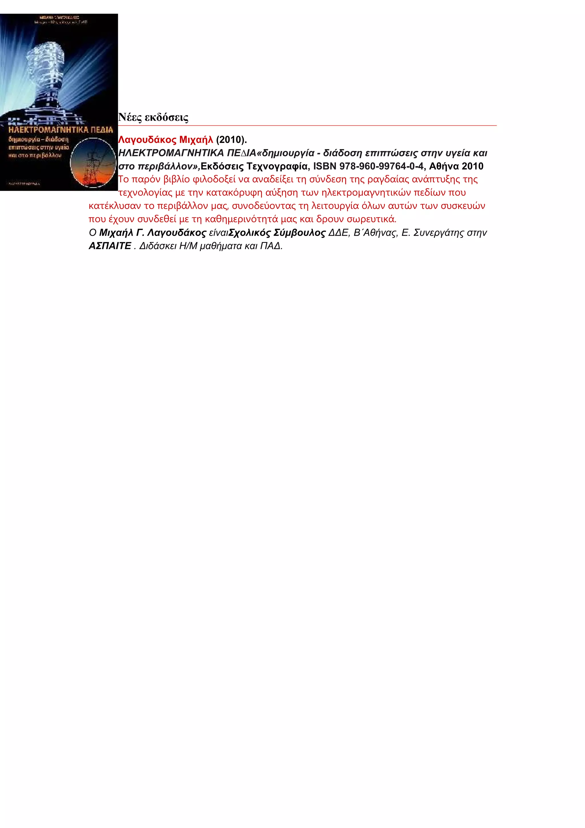 στο περιβάλλον»,Εκδόσεις Τεχνογραφία, ISBN 978-960-99764-0-4, Αθήνα 2010