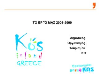 ΤΟ ΕΡΓΟ ΜΑΣ2008-2009 Δημοτικός Οργανισμός Τουρισμού ΚΩ