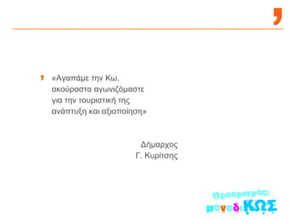 «Αγαπάμε την Κω, ακούραστα αγωνιζόμαστε για την τουριστική της ανάπτυξη και αξιοποίηση» Δήμαρχος Γ. Κυρίτσης