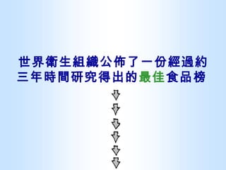 世界衛生組織公佈了一份經過約三年時間研究得出的 最佳 食品榜