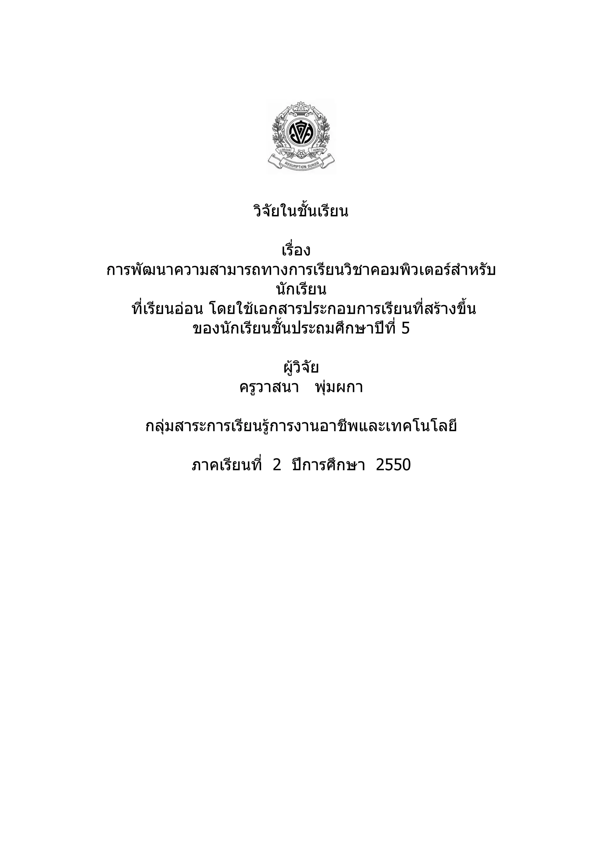 การพัฒนาความสามารถทางการเรียนวิชาคอมพิวเตอร์สำาหรับ