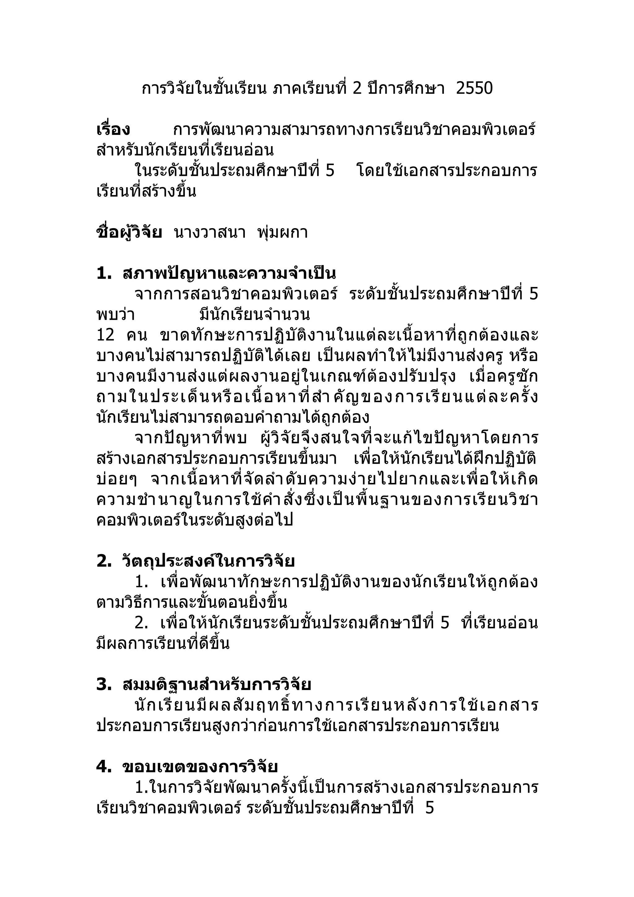 บทความวิจัย เรื่อง การพัฒนาบทเรียนคอมพิวเตอร์บนเครือข่ายอินเทอร์เน็ต เรื่อง ... PDF