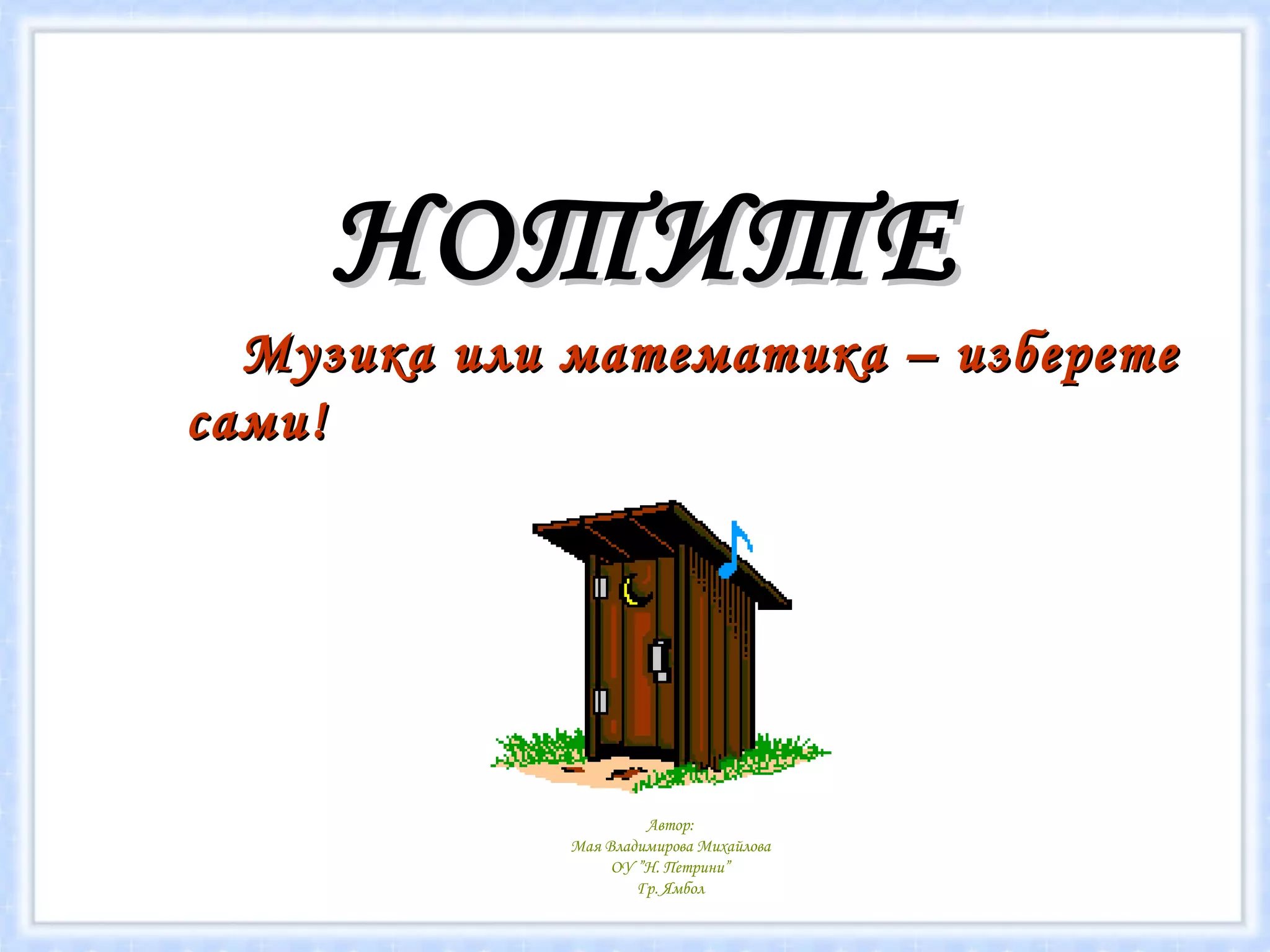 НОТИТЕ Музика илиматематика – изберете сами! Автор: Мая Владимирова Михайлова ОУ ”Н. Петрини” Гр. Ямбол - 2.
