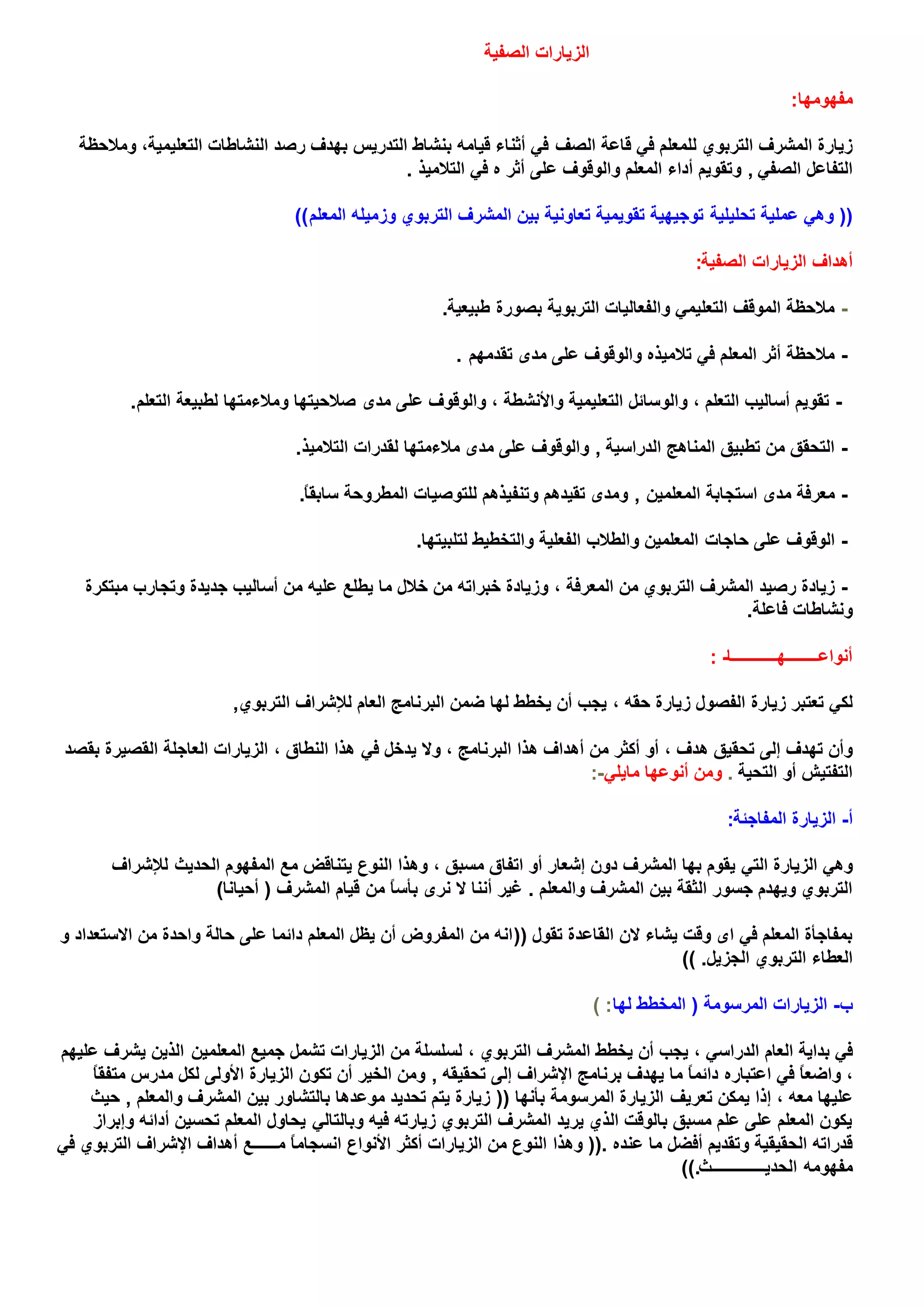 الزيارة الصفية للمشرف