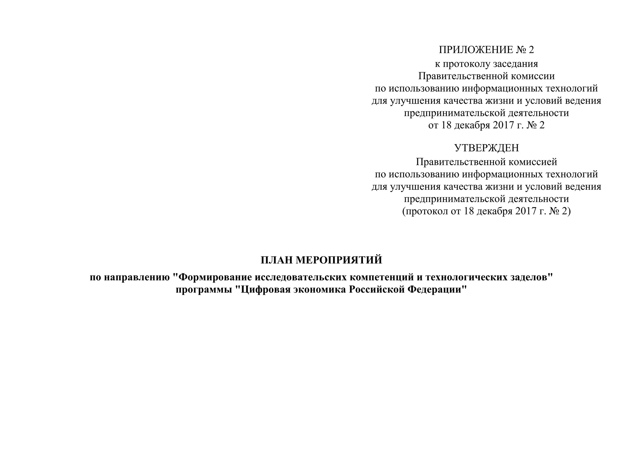 план мероприятий по направлению «Формирование исследовательских компетенций и технологических заделов» программы «Цифровая экономика Российской Федерации»