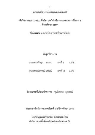 1 แบบเสนอโครงร่างโครงงานคอมพิวเตอร์ รหัสวิชา ง33201-33202 ชื่อวิชา