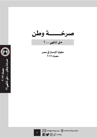 في هذا التقرير سنعرض لما قمنا برصده وتوثيقه فقط وليس كل ما حدث في 2017 ولا يزال يحدث حتى الآن, فما حدث أكبر من الوصف, ونتمنى أن تصل هذه التقارير إلى صانعي القرار والسياسات ومنصات الرأي لتكون وسيلة من وسائل الضغط لوقف الانتهاكات وإعادة النظر في سياسة السلطة نحو المواطنين بشكل عام والمعارضين السياسيين بشكل خاص, هي صرخة لعلها تجد آذانا مصغية, ولكني أظن أنه ما من مجيب.