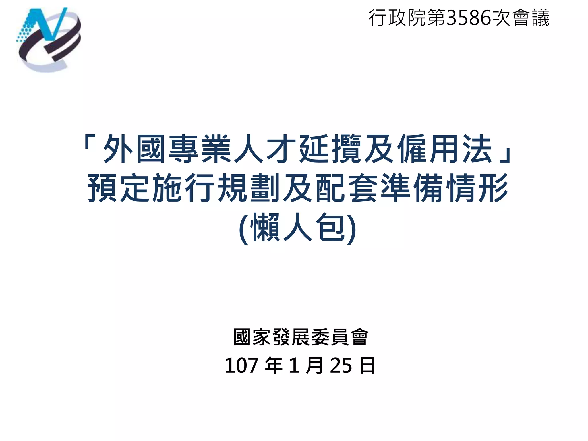 《外國專業人才延攬及僱用法》旨在松綁外國專業人才的簽證、工作和居留規定,並提供保險、退休和租稅優惠,預計於107年2月8日施行。法案共22條,涉及8個部會,將優化工作環境並鼓勵外國人才來臺。後續配套措施將設立國家級單一攬才入口網,整合相關資源以提升海外人才吸引力。