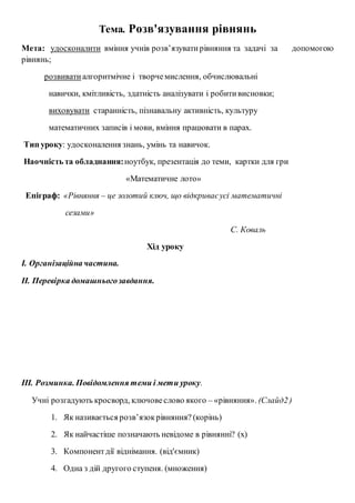 Епіграф: «Рівняння – це золотий ключ, що відкриваєусі математичні