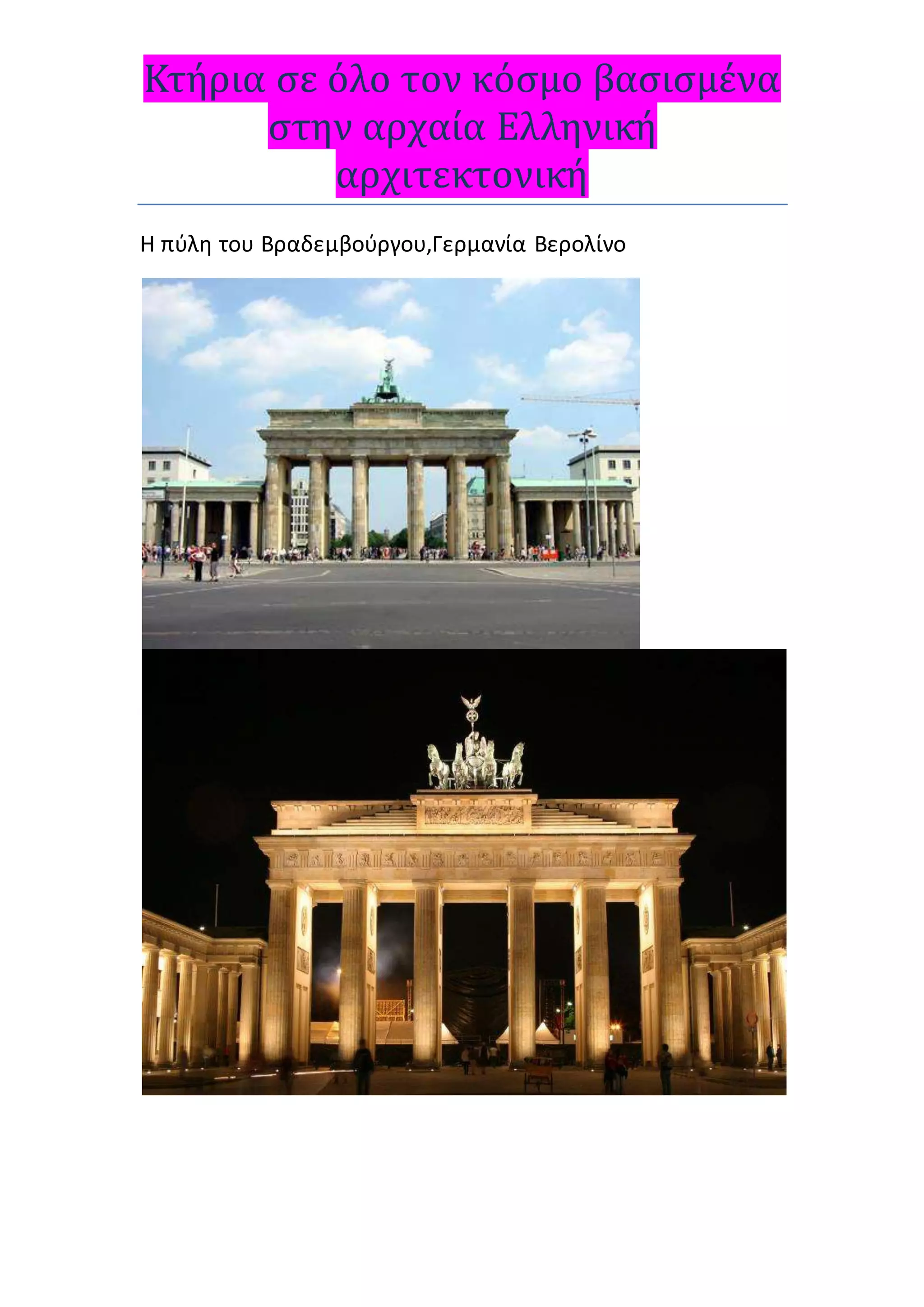 Η πύλη του Bραδεμβούργου,Γερμανία Βερολίνο