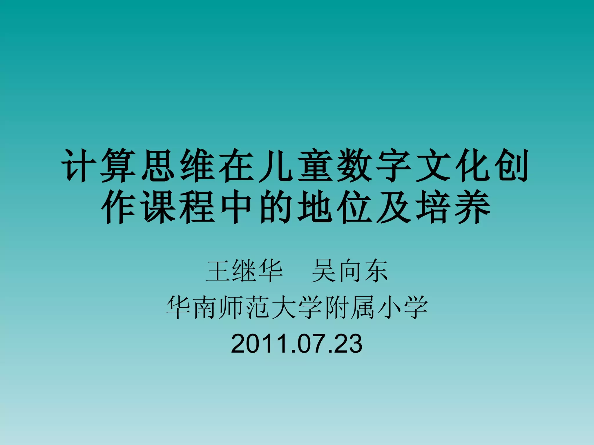 该文档探讨了计算思维在儿童数字文化创作课程中的重要性,强调了解决问题的能力超越传统的读写算能力。计算思维被定义为运用计算机科学的基本概念来解决问题并设计系统,涵盖了数据组织、抽象和算法思想等方法。文中还提供了计算思维的培养方法及实际案例。