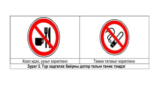 өнгөтэй байх бөгөөд тохирох таних тэмдэг, тэмдэглэгээг