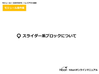 スライダー系ブロックについて hibariオンラインマニュアル モジュール操作編 モジュール> CONTENTS >レイアウト設定