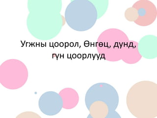 • Ялгах онош :өнгөц ,гүн цоорлууд ,холбоосын