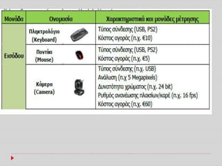 μονάδες εισόδου, εξόδου, επεξεργασίας και