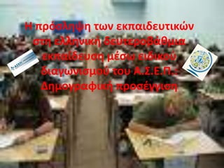 Η πρόσληψη τωνεκπαιδευτικών στη ελληνική δευτεροβάθμια εκπαίδευση μέσω ειδικού διαγωνισμού του Α.Σ.Ε.Π.: Δημογραφική προσέγγιση
