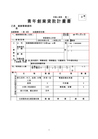 本文件为一份青年创业贷款计划书,申请人傅先生希望通过贷款80万元来支持其独资经营的草屋个性工作室,专注于室内设计与手作商品。计划书详细描述了申请人的背景、经营理念、市场分析与预计收益,旨在提升产品能见度并扩大客户基础。申请人强调诚信与环境保护,并设定了明确的还款计划。