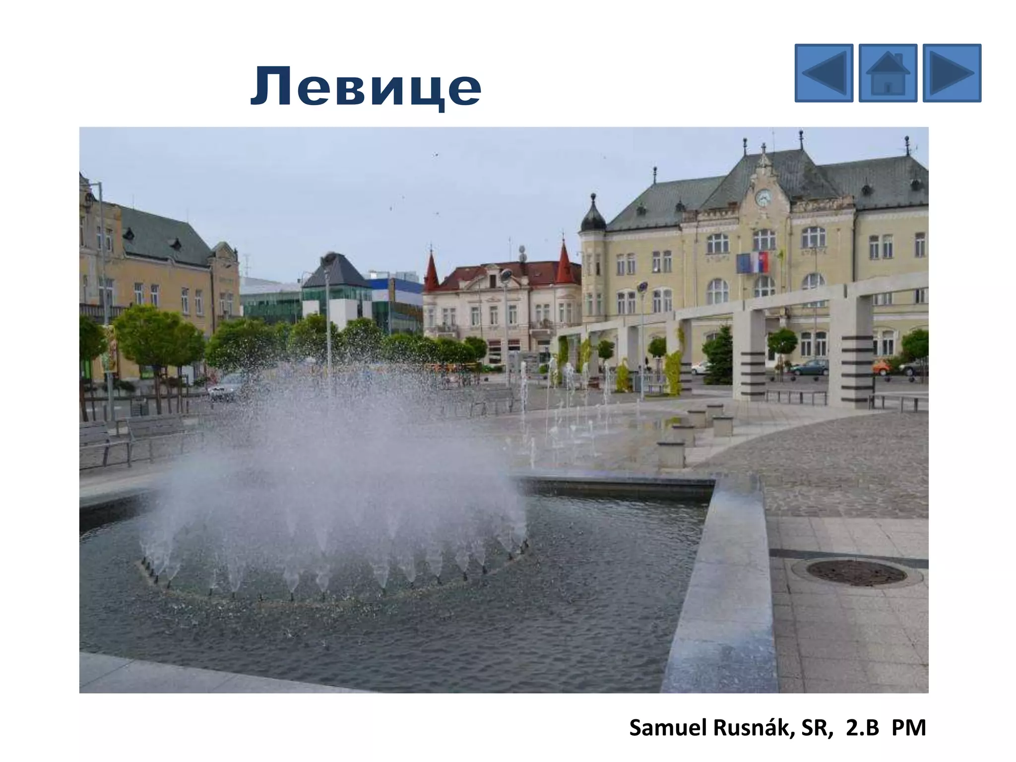 Документ описывает географическое положение города Левице в Словакии, находящегося на реке Подлужиянка и окруженного штявницкими горами. Также упоминаются главные достопримечательности, включая церкви и замок, а также значимые личности, такие как актёры и спортсмены. В документе перечислены различные части и микрорайоны города.
