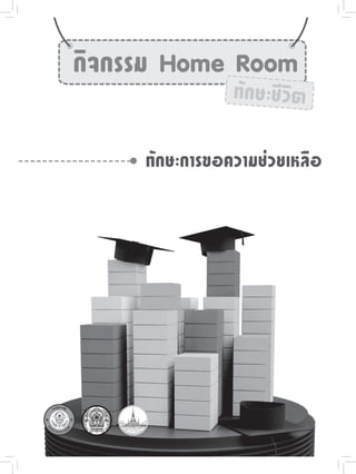 Home Room ทั ก ษะชี ว ิ ต คำนำ กิจกรรมโฮมรูม นับเป็นกิจกรรมที่สำคัญในการที่ครูประจำชั้นหรือครูที่ปรึกษาจะได้มีโอกาส พบปะนักเรียนเพื่อได้พูดคุยแลกเปลี่ยนความคิดเห็น และดูแลช่วยเหลือนักเรียน การจัดกิจกรรมโฮมรูม ในโรงเรียนมีหลายรูปแบบซึ่งแล้วแต่บริบทของโรงเรียน แต่เป้าหมายที่สำคัญของการโฮมรูมก็คือ การที่ คุณครูซึ่งเปรียบเสมือนพ่อและแม่ได้มีเวลาที่จะพบลูกและพูดคุยแลกเปลี่ยนอบรมสั่งสอนในเรื่องที่ดีงาม รับฟังและยอมรับในเรื่องของลูกๆ อย่างไม่มีเงื่อนไขทำให้เกิดความเข้าใจในครอบครัว และเป็นการสร้าง ภูมิคุ้มกันปัญหาอย่างเข้มแข็ง คู่มือโฮมรูมเพื่อพัฒนาทักษะการดำรงชีวิตนักเรียนมัธยมศึกษาครูที่ปรึกษา ฉบับนี้จัดทำขึ้นเพื่อ เป็นแนวทางในการจัดกิจกรรมโฮมรูมสำหรับครูที่ปรึกษาในระดับมัธยมศึกษา ในการให้นักเรียน เกิดทักษะในการดำรงชีวิตที่จำเป็น ในรูปแบบกิจกรรม ROLE PLAY โดยจัดทำเป็นคู่มือ 3 ทักษะคือ ทักษะการปฏิเสธ ทักษะการบอกความต้องการ และทักษะการขอความช่วยเหลือ ซึ่งเป็นทักษะที่สำคัญ สำหรับนักเรียนชั้นมัธยมศึกษา โดยหวังเป็นอย่างยิ่งว่าคุณครูที่นำใช้หากได้ศึกษาโดยละเอียดและนำไป ใช้แล้ว โฮมรูมทุกๆ วันจะเป็นวันที่เด็กๆ รอคอย และจะก่อให้เกิดการเสริมสร้างทักษะในการดำรงชีวิต เพื่ออยู่ในสังคมได้มีคุณค่า โรงพยาบาลยุวประสาทไวทโยปถัมภ์ และศูนย์พัฒนากิจกรรมแนะแนว กลุ่มเครือข่ายส่งเสริม ประสิทธิภาพจัดการมัธยมศึกษาตอนปลายจังหวัดสมุทรปราการ หวังเป็นอย่างยิ่งว่าเอกสารชุดนี้จะเป็น จุดเริ่มต้นของการจัดกิจกรรมโฮมรูมอย่างมีคุณค่าของโรงเรียนทุกโรงที่นำไปใช้ต่อไป คณะผู้จัดทำ ก
