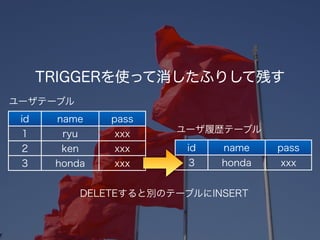 -- DELETE時に実行するTRIGGERを仕掛ける