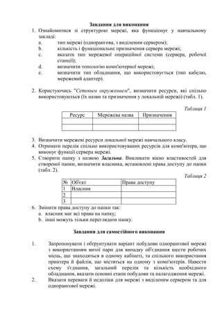 використовуються (їх назви та призначення у локальній мережі) (табл. 1).