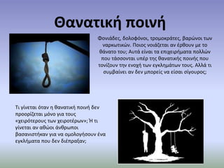 • Η θανατική ποινή με το βάναυσο και απάνθρωπο χαρακτήρα της προκαλεί το κοινό αίσθημα,