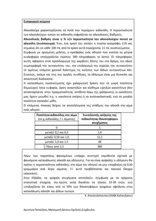 φαινόμενα κατανάλωσης αλκοόλ και οδήγησης. Για να είναι ασφαλής η οδήγηση θα
